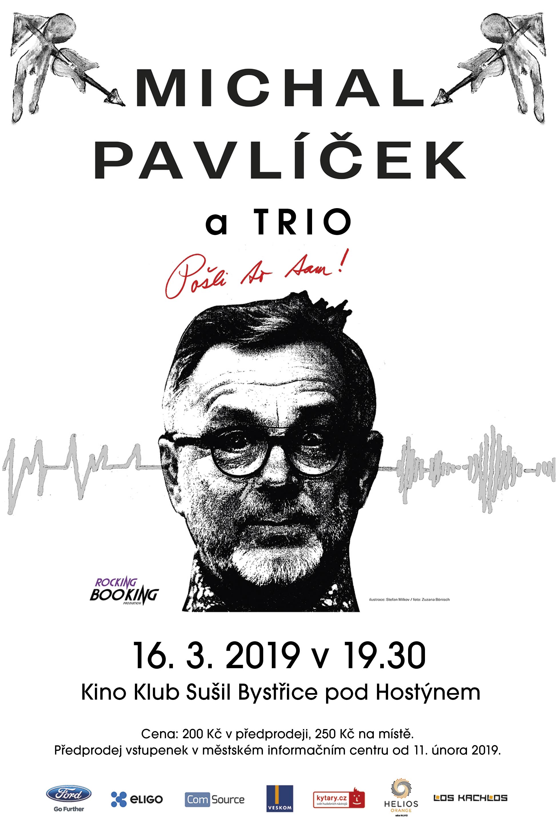 Koncert kytarového mága a skladatele Michala Pavlíčka pojmenovaný podle jeho nového autorského alba „Pošli to tam“ pořádá město Bystřice pod Hostýnem 16. března 2019. Pavlíček v bystřickém Kině Klub Sušil vystoupí v doprovodu Tria: Martin Iva…
