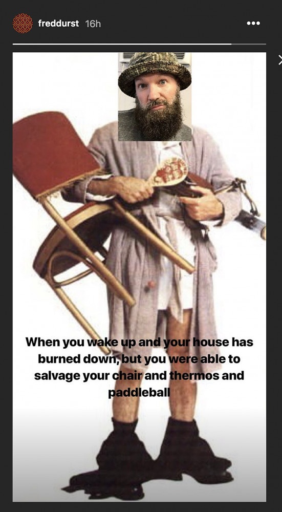 Například Fred Durst, zpěvák Limp Bizkit, našel místo svého domu spáleniště. Přesto neztratil smysl pro humor, což dokázal koláží, kterou zveřejnil na svém Instagramu. Těžko říct, zda má stejný nadhled jeho kolega, kytarista Wes Borland, který měl v domě několik svých nástrojů.