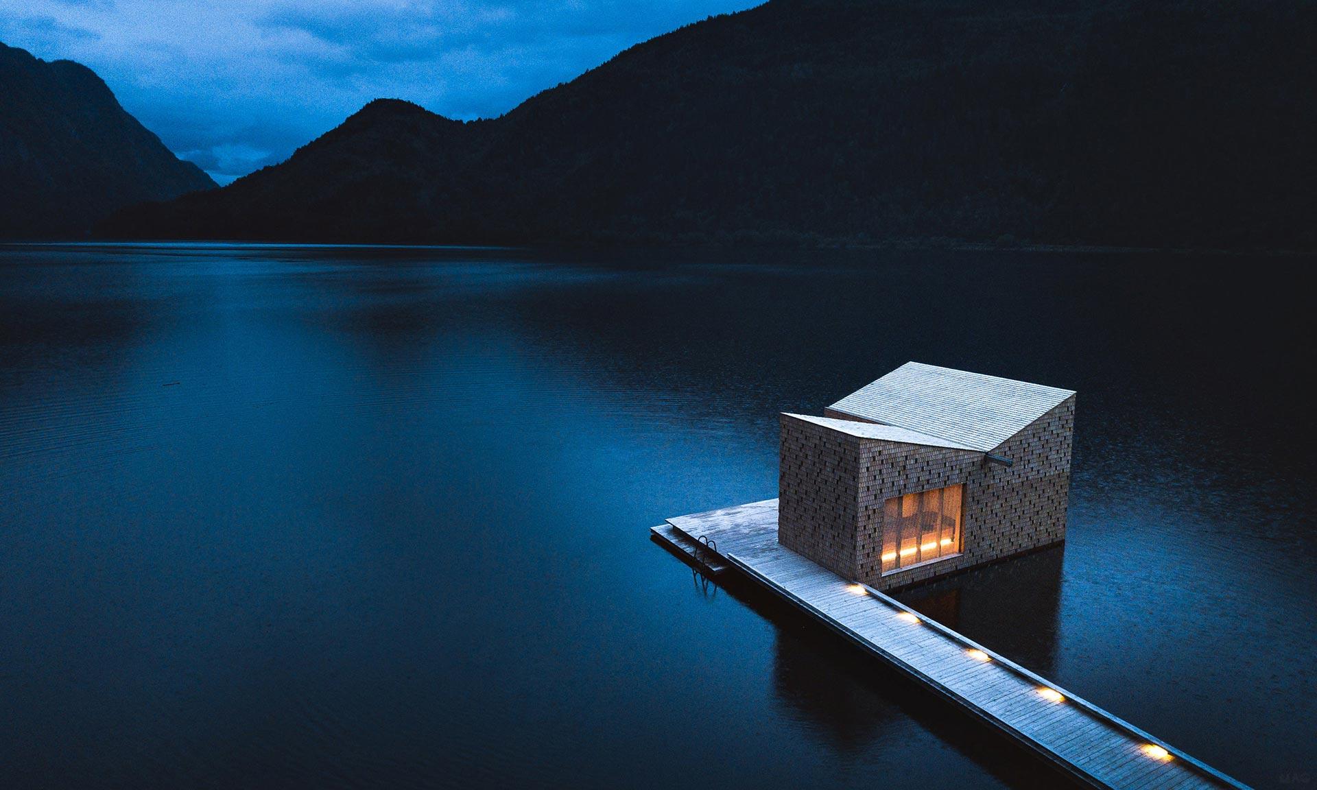 Do sauny se můžete dostat speciální stezkou z vesnice a po prodlouženém širokém molu, které umožňuje, aby stavba plula po hladině. Objekt je pokryt tradičními šindelemi a kromě saunovacího prostoru s výhledem do krajiny jde také o místo pro odpočinek. A nakonec je tu také drobná šatna. Ocenili byste něco podobného i v našich končinách?