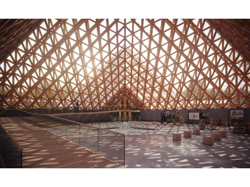 Shigeru Ban tyto objekty totiž vyprojektoval v designu, který je nápadně blízký tradičním japonským konstrukčním metodám. Areál také protíná železniční trať, kterou se zde návštěvníci dostanou. Po jeho obvodu uvidí dřevěné domy, ve kterých budou místa pro výrobu, zrání nebo galerii. V jeho středu pak naleznou pozoruhodné destilační pyramidy. Do budov bude pronikat spousta denního světla. A jak vidíte na obrázcích, tak vše bude sladěno!