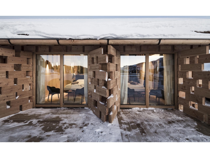 Jak postavit hotel tak, aby ladil s malebnou a ničím nerušenou horskou krajinou Jižního Tyrolska? Italské architektonické studio Noa na to přišlo. Zkrátka postavilo dvě chaty ze dřevěných kvádrů, kde se nyní turisté mohou ubytovat. Návštěvníci mohou navštívit i restauraci, wellness i vinný sklep s vinárnou.