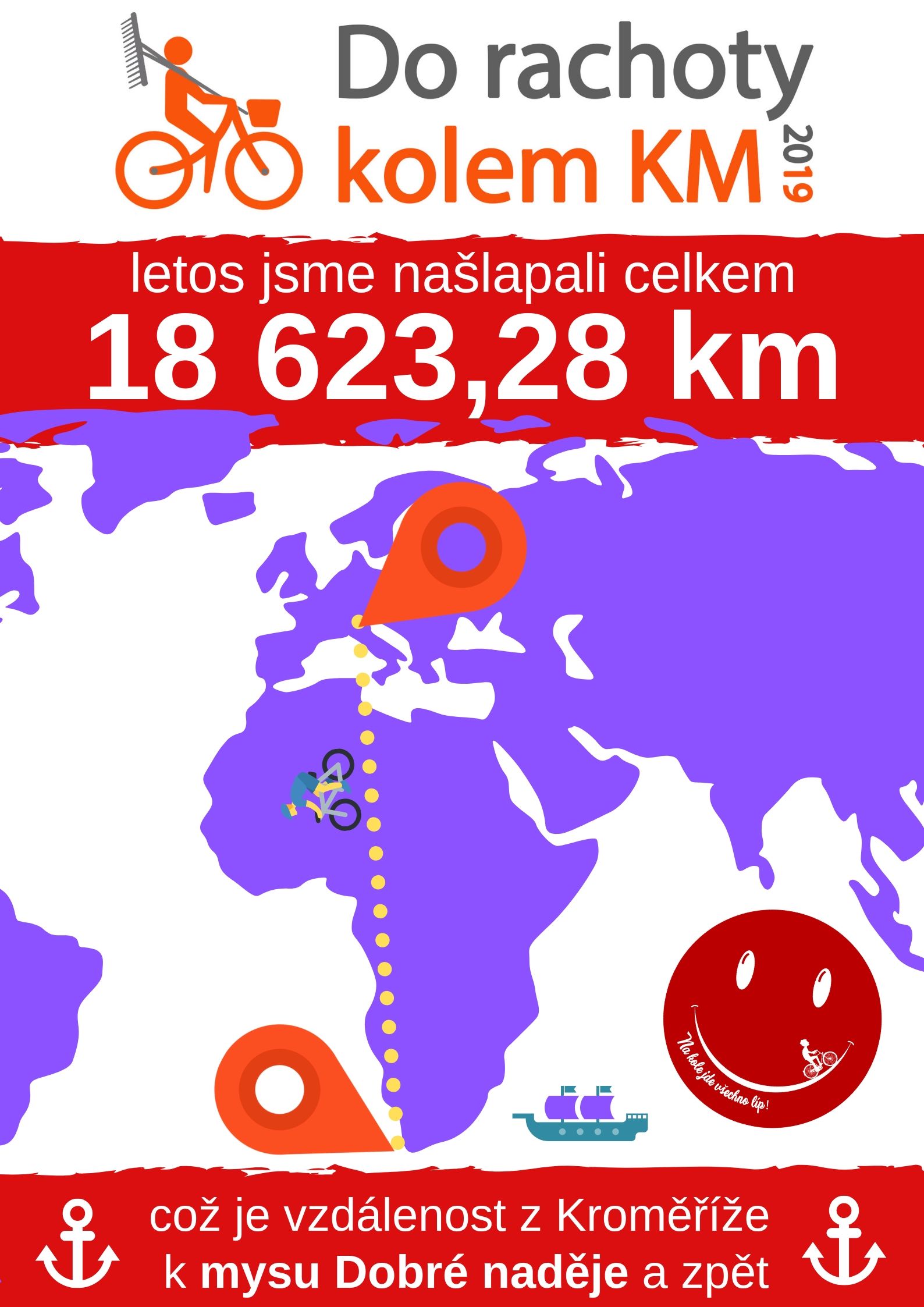 Zpáteční výlet přes celou Afriku zvládli letos společnými silami Kroměřížané zapojení do letošního ročníku soutěže Do rachoty kolem KM. Pomyslná zpáteční cesta se mohla uskutečnit díky tomu, že všichni soutěžící najeli celkových 18 623,28 kilometrů. To odpovídá dvojnásobku vzdálenosti z Kroměříže k mysu Dobré naděje, místu na jižním okraji černého kontinentu.