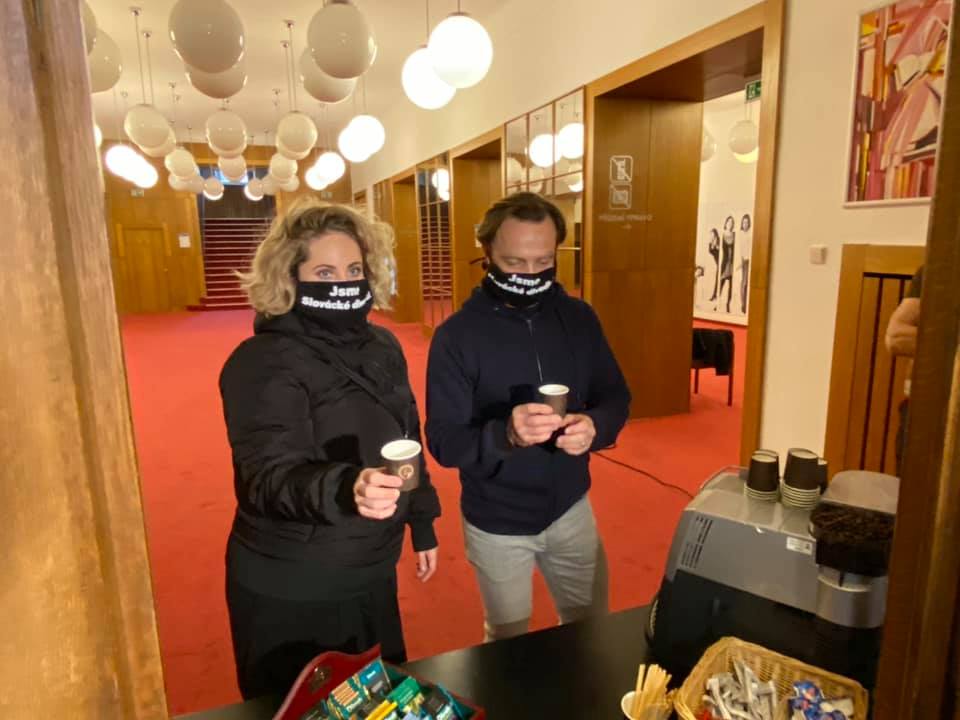 Občerstvení vydávali herci Tomáš Šulaj, Jitka Hlaváčová, Petra Staňková a Pavel Šupina, první dva jsou letos nominováni na prestižní Ceny Thálie. Čtyřiačtyřicetiletý Šulaj si povídání s diváky při vaření čaje a kávy užíval.