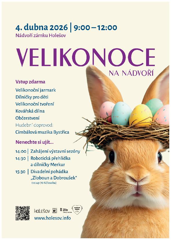 Srdečně zveme veřejnost na „Velikonoce na nádvoří“, akci pro širokou veřejnost, která se na holešovském zámku koná 4. dubna 2026 od 9 do 12 hodin. Vstup je zdarma.
