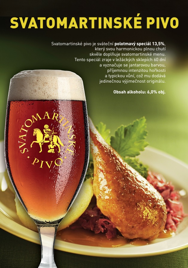 Jantarová barva, příjemná intenzivní hořkost a typická vůně. To jsou hlavní charakteristiky nového svatomartinského polotmavého speciálu 13,5%, který skvěle doplňuje sváteční svatomartinské menu.