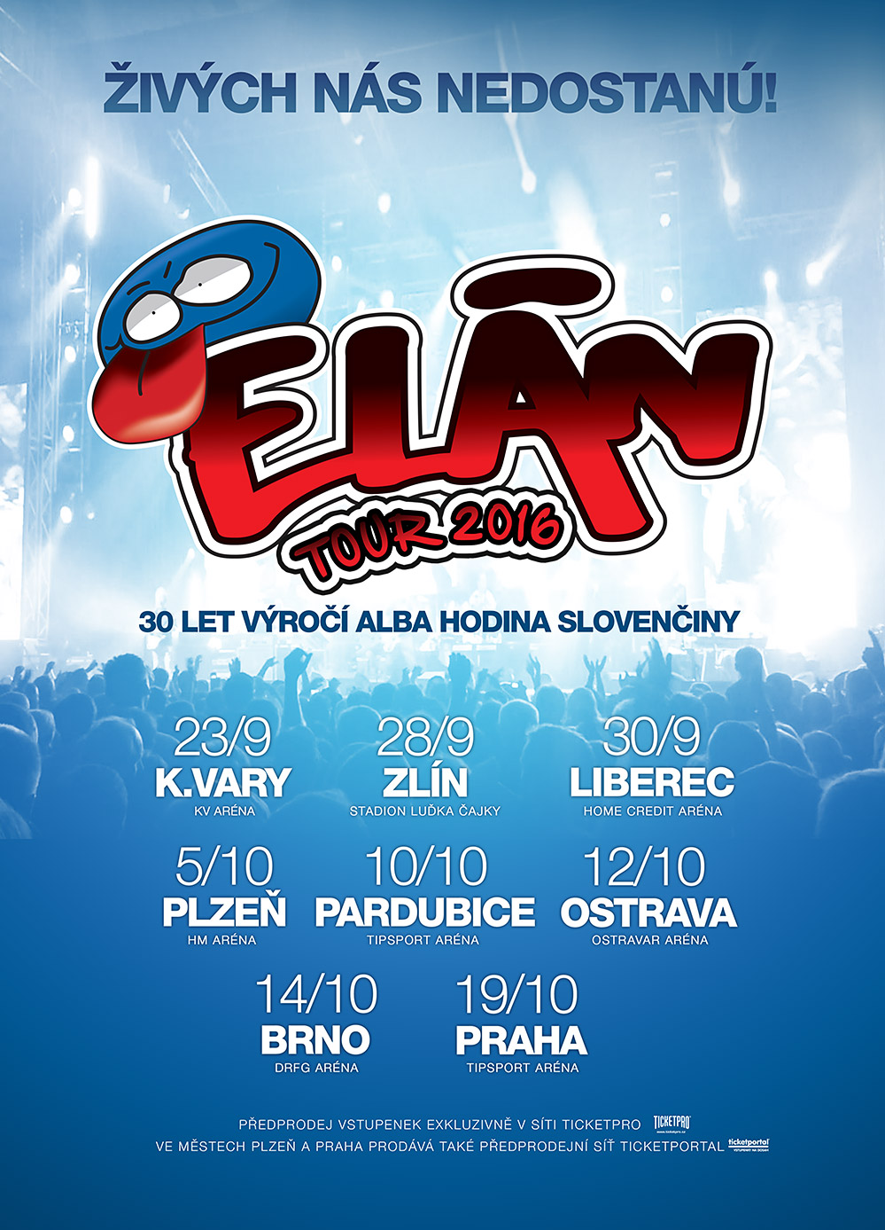 Má k tomu několik důvodů: jednak si připomíná 30. výročí od vydání nejúspěšnějšího alba Hodina slovenčiny a zároveň hodlá fanouškům představit ty nejlepší písničky z aktuální skvěle přijaté nahrávky Živých nás nedostanú. Dvouhodinový program doplní největší hity kapely, bez kterých si lze vystoupení Elánu jen těžko představit.