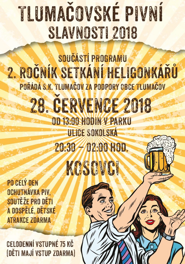 Již zítra, v sobotu 28. července, se konají Tlumačovské pivní slavnosti! Čeká vás v prvé řadě celodenní ochutnávka piv, soutěže pro děti i dospělé, ale také hudební vystoupení. Součástí programu je totiž také 2. ročník setkání heligo…