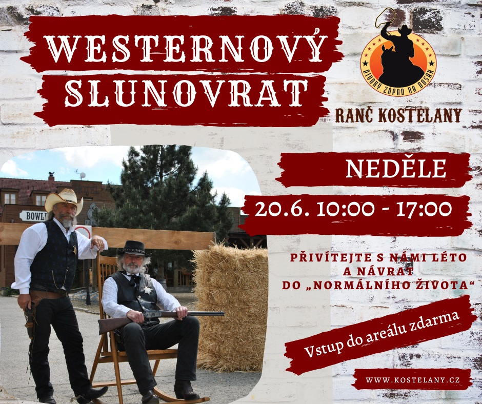 Láká vás romantika Divokého západu? Máte rádi western s kovboji a jejich osedlanými parťáky? Oslavte v neděli 20. června na Ranči v Kostelanech příchod léta v kovbojském stylu. WESTERNOVÝ SLUNOVRAT začíná v 10 hodin a nabídne celodenní z…