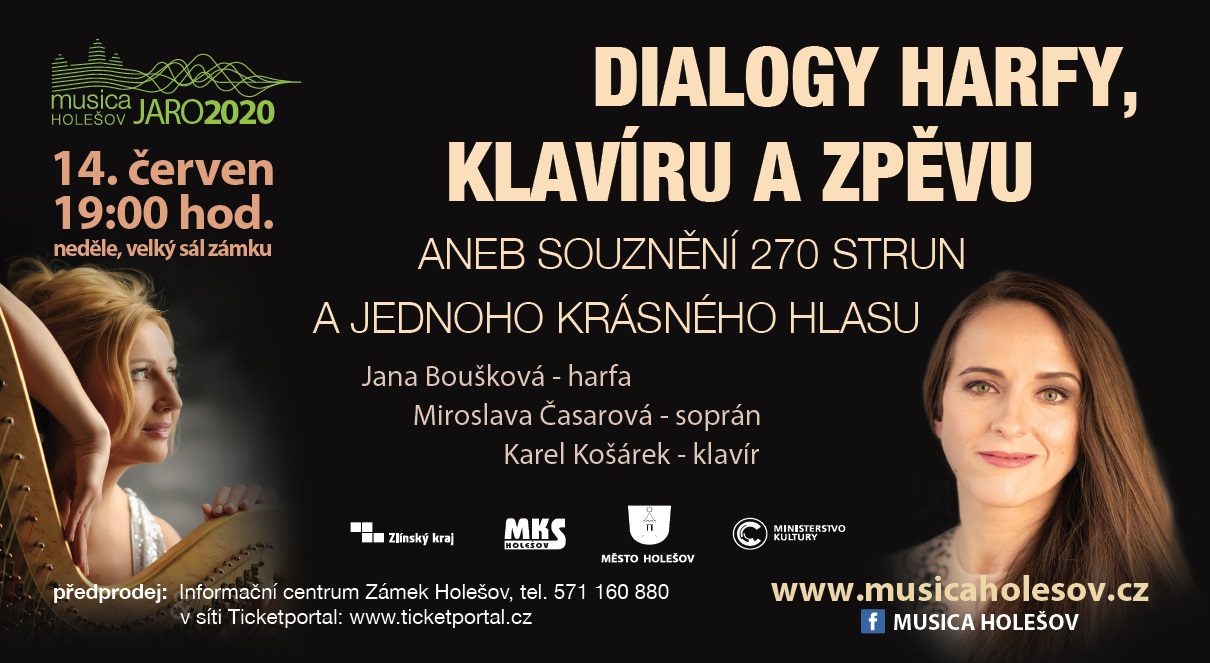 V neděli 14. června se v holešovském zámku uskuteční jeden z vůbec prvních koncertů po uvolnění přísných protikoronavirových opatření s názvem „Dialogy klavíru, harfy a zpěvu anebo souznění 270 strun a jednoho krásného hlasu“. Koncert poř…