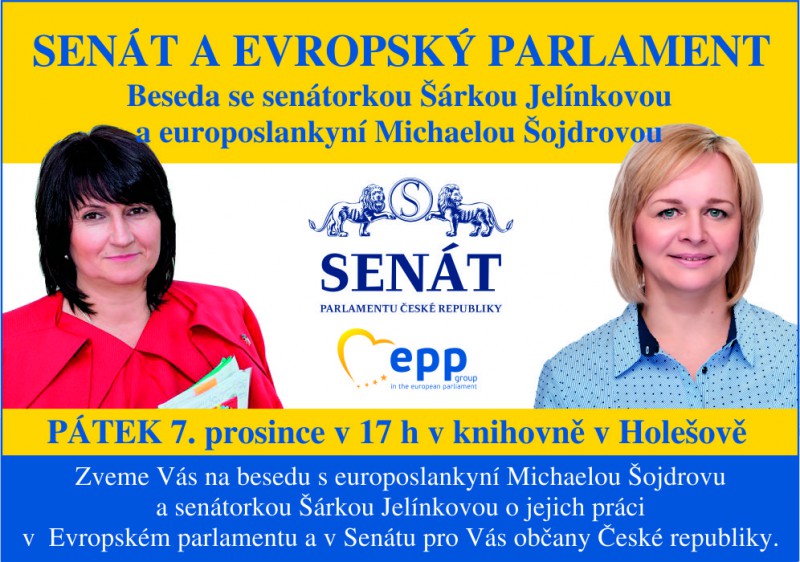 Co vše zahrnuje práce v evropském parlamentu a v českém senátu? Co dělají europoslanci a senátoři pro občany České republiky? Dozvíte se to v holešovské knihovně na páteční besedě s Michaelou Šojdrovou a Šárkou Jelínkovou. Michaela Šojd…