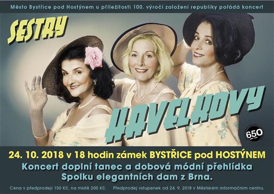 Město Bystřice pod Hostýnem pořádá u příležitosti 100. výročí založení republiky hudební vystoupení Sester Havelkových. Koncert se uskuteční ve středu 24. října v 18 hodin na bystřickém zámku a Sestry Havelkovy doprovodí hudba je…