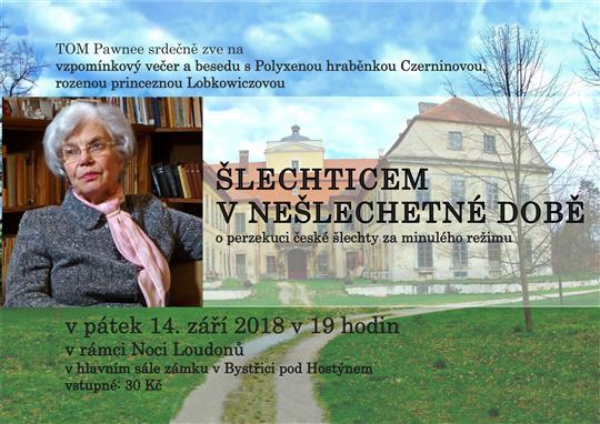 Přijďte dnes na vzpomínkový večer a besedu Šlechticem v nešlechetné době. Polyxena hraběnka Czerninová, rozená princezna Lobkowiczovou na ní bude vyprávět o perzekuci české šlechty za minulého režimu, což je záležitost, která se ji bezprost…