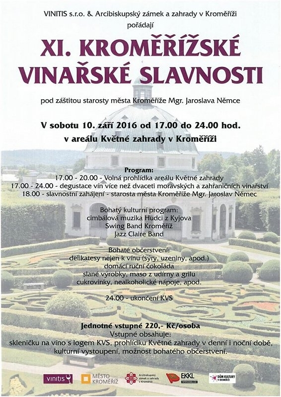 V pořadí jedenáctý ročník populárních Kroměřížských vinařských slavností bude v sobotu 10. září hostit kroměřížská Květná zahrada.