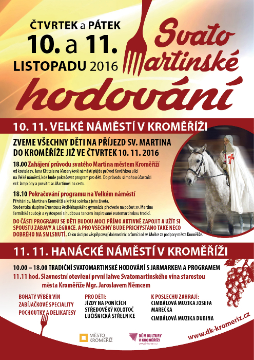 Město Kroměříž společně s Domem kultury v Kroměříži připravilo pro všechny milovníky svatomartinského hodování bohatý program, který je v letošním roce rozdělen do dvou dnů.