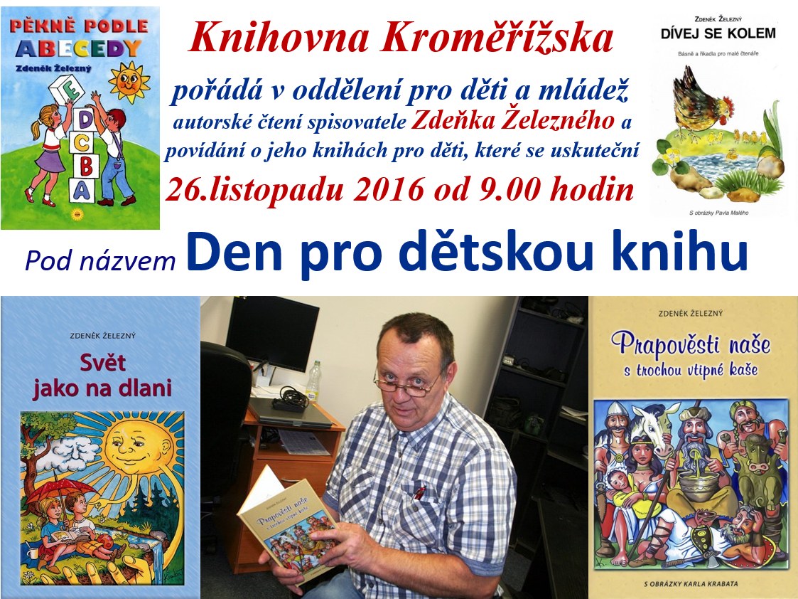 Již tradičně se knihovnice z oddělení pro děti a mládež Knihovny Kroměřížska zapojí do celostátní akce Den pro dětskou knihu. Ta se v letošním roce koná v sobotu 26. listopadu od 9:00 do 11:30 hodin a slibuje dětem, rodičům a prarodičům zábavné dopoledne s výtvarnou dílničkou, hrami a krátkým kulturním programem.