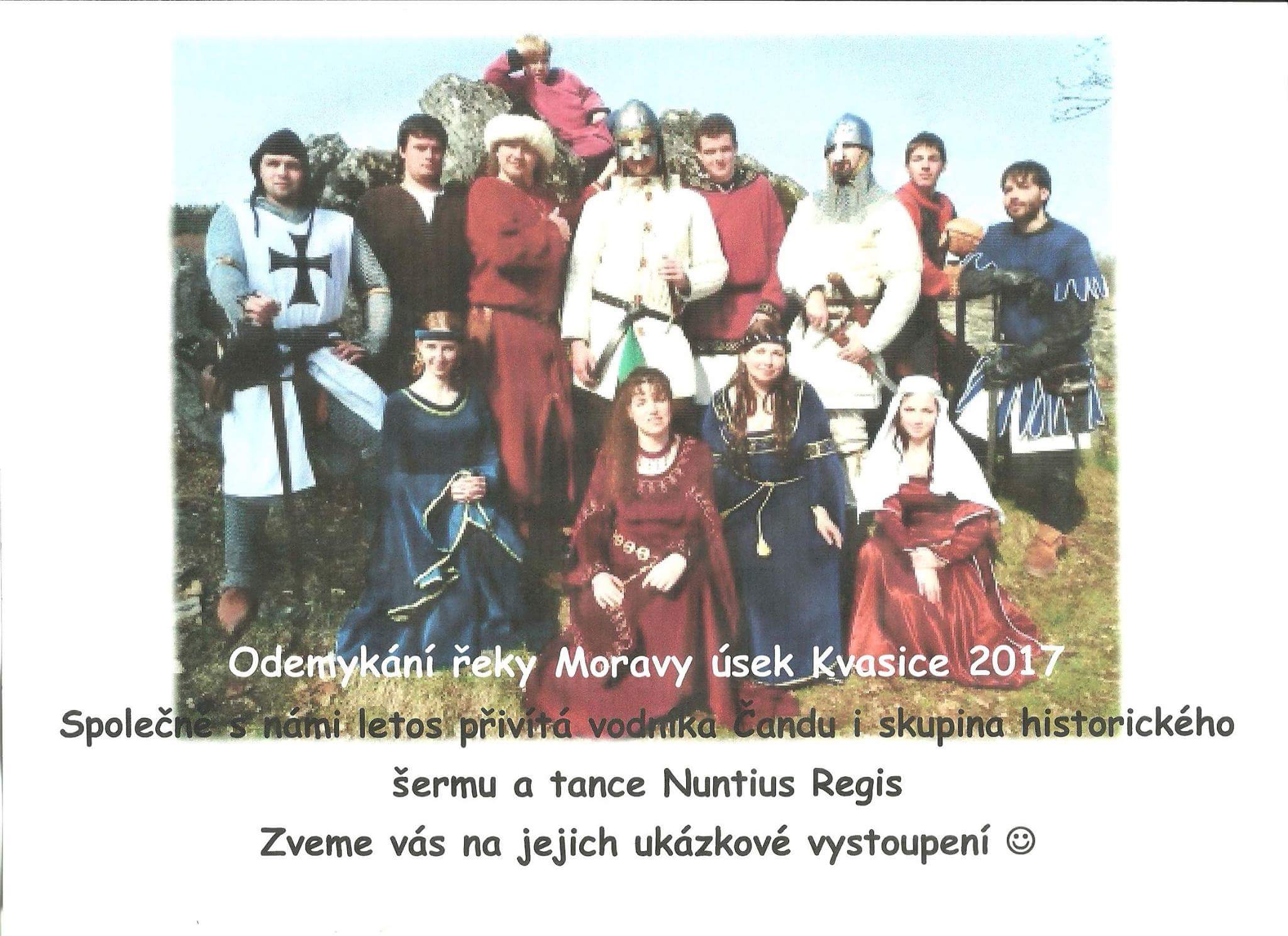 Platí, že co řeka, to jiný mrav. Na loděnici v Kvasicích se tradičně předvádí v dobových kostýmech historický šerm a tance Nuntius Regis.Bude zajištěno i bohaté občerstvení.