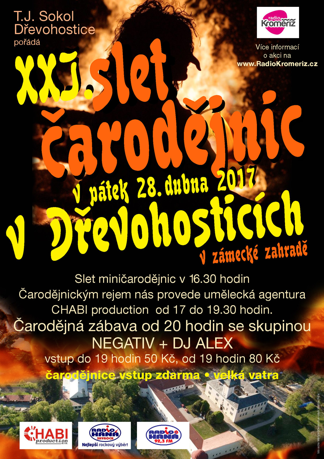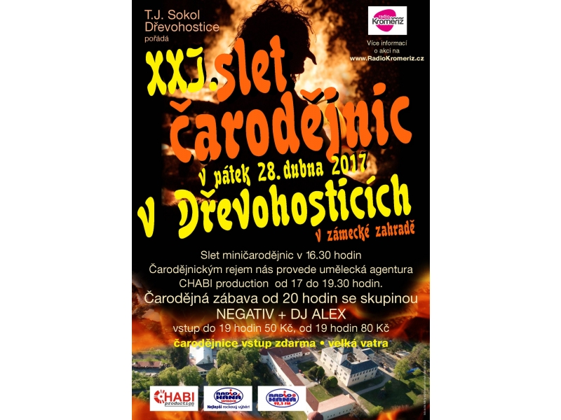 Dnes se uskuteční už 21. ročník sletu všech čarodějnic z regionu v Dřevohosticích, který podporuje i Rádio Kroměříž. Vzhledem k nepříznivému počasí se nebude slet čarodějnic konat na zámecké zahradě zámku v Dřevohosticích, ale v místní sokolovně. A prý tam bude pořádný horko!