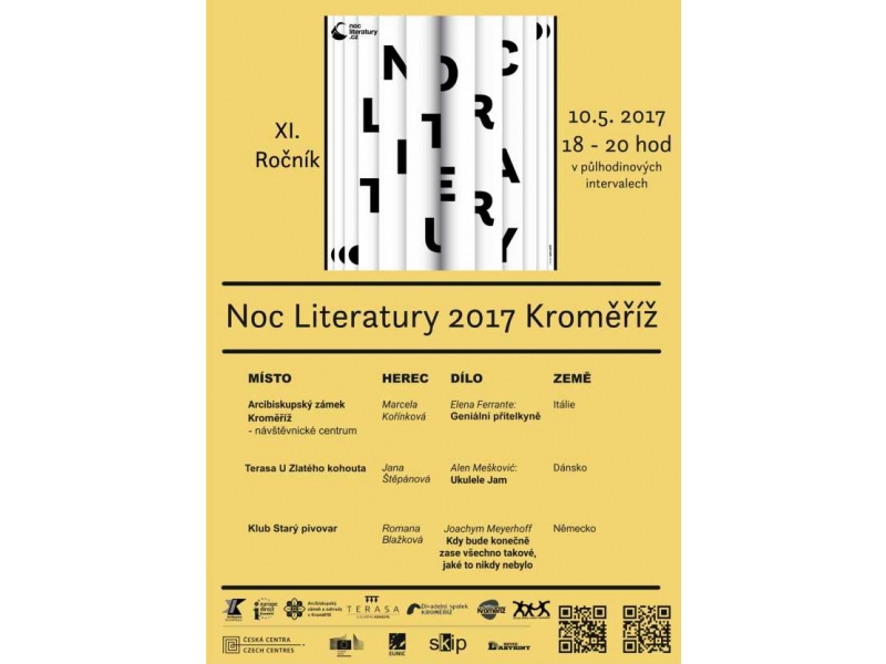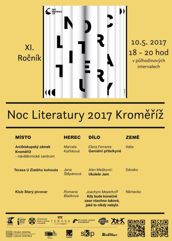 Série veřejných nočních čtení z vybraných děl současné evropské literatury je letos naplánována na 10. května na třech zajímavých místech v Kroměříži.