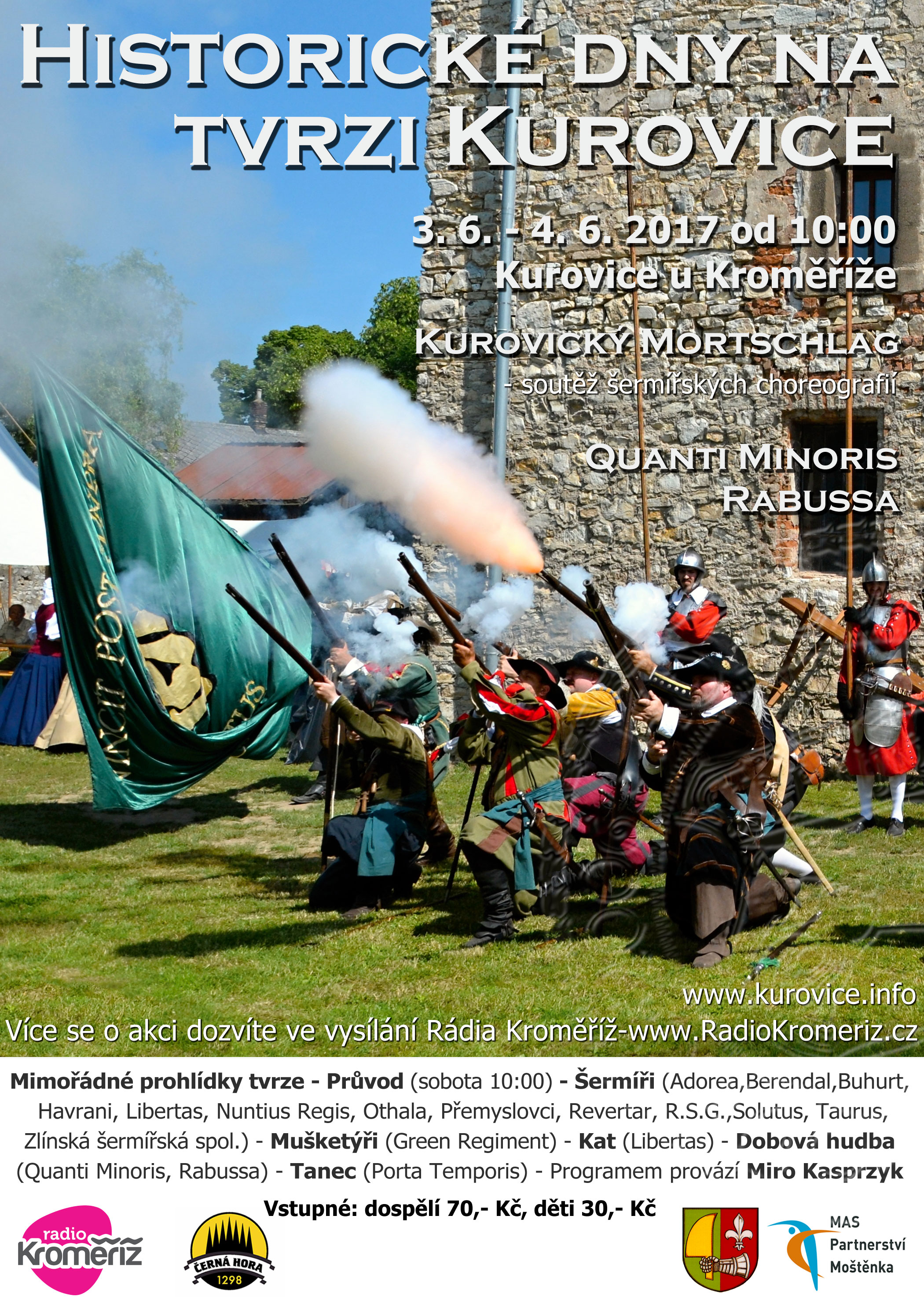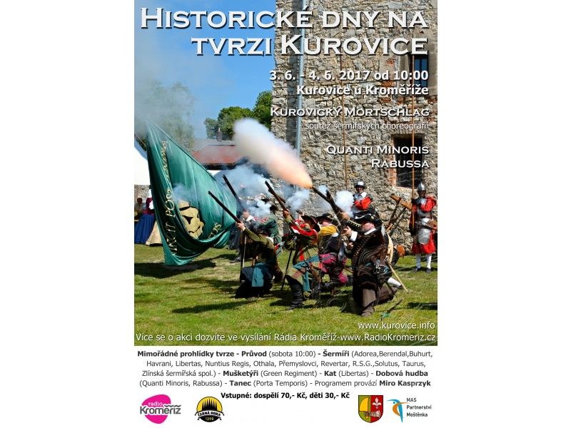 Každý rok se na tvrzi Kurovice odehrávají Historické dny a krásná obec u Tlumačova se promění ve středověké slavnosti plné mušketýrů, šermířů i šlechticů. Letos se uskuteční o víkendu 3. – 4. června a Rádio Kroměříž bude u toho s vámi.