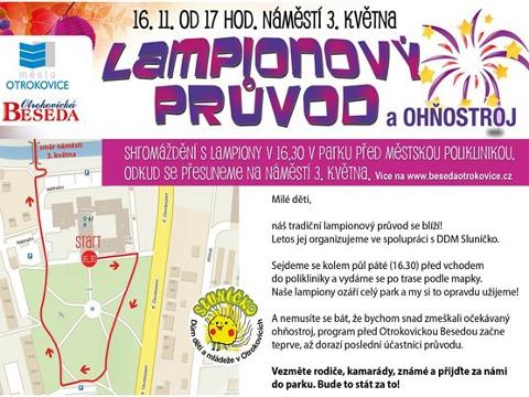V předvečer Dne boje za svobodu a demokracii se děti i dospělí v Otrokovicích vydají na velký lampionový průvod, který vyvrcholí ohňostrojem. Rozzářené Otrokovice si tak tradičně připomínají přelomový 17. listopad 1989 a pokaždé se zde sejde velká spousta lidí.