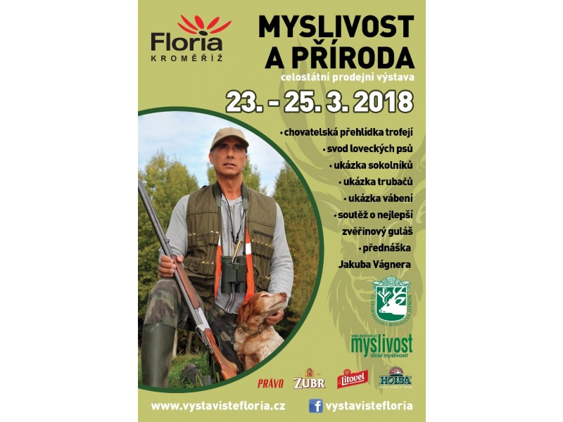 Kroměřížské výstaviště Floria pořádá od 23. do 25. března již pátý ročník prodejní výstavy MYSLIVOST A PŘÍRODA. Návštěvníky ohromí více než tisícovka vzácných trofejí zvěře, jarní svod psů loveckých plemen, ukázka sokolníků i soutěž o nejlepší zvěřinový guláš. Výstaviště navštíví i proslulý rybář Jakub Vágner.