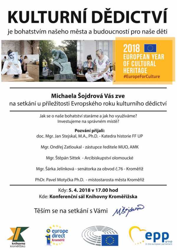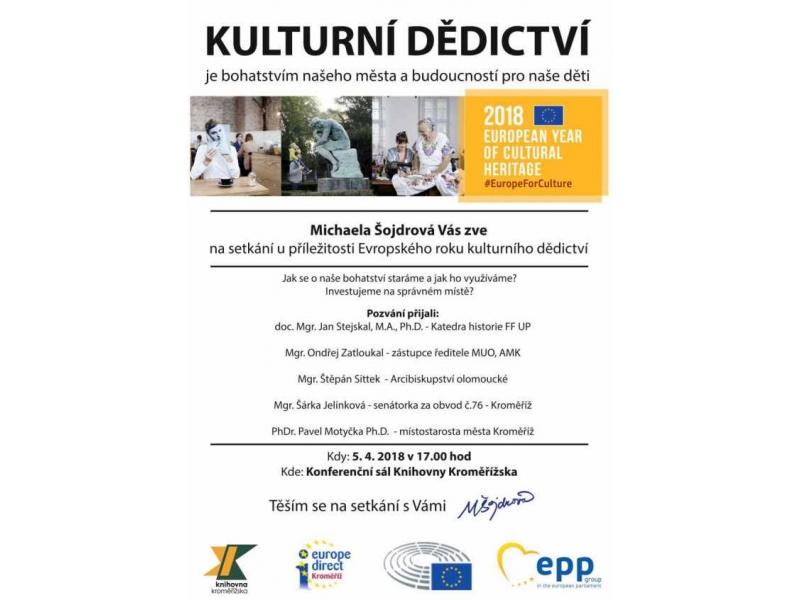 Jak se staráme o naše kulturní bohatství a jak jej využíváme můžete přijít poslechnout na diskuzi s lidmi na slovo vzaté zítra v Knihovně Kroměřížska. Na setkání vás zve Michaela Šojdrová v rámci letošního Evropského roku kulturního dědictví.
