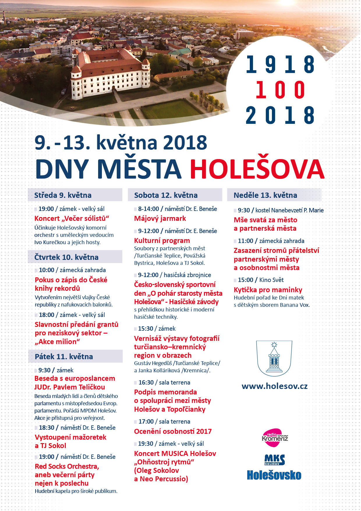 Jedna z nejvýznamnějších holešovských akcí přijde již zanedlouho! Dny města Holešova 2018 se budou konat od 9. do 13. května a i tento rok přinese působivé hudební zážitky nebo ocenění osobností města. Program také opět zpestří přehlídka mažoretek a na své si přijdou i milovníci jarmarků. A čekají vás také další akce!