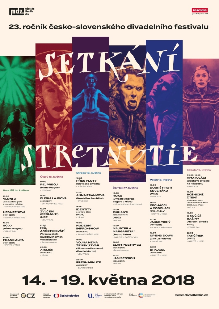 Již 23. ročník česko-slovenského divadelního festivalu Setkání Stretnutie proběhne mezi 14. a 19. květnem! Cílem festivalu je upozornit na aktivní vztahy českých a slovenských divadel a divadelníků, tvůrčích týmů, ukázat výsledky vzájemné spolupráce, vyvolat diskusi o vzájemném dialogu české a slovenské divadelní kultury. Tak jako v předchozím ročníku kladou pořadatelé důraz na tzv. československou stopu, provázanost českých a slovenských tvůrců, vzájemné inspirování, zároveň chtějí svou pozornost zacílit především k autorské dramaturgii a uvádění původních dramatických novinek.
