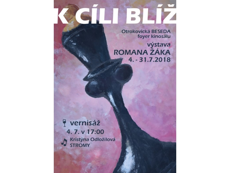 Výstava je průřezem tvorbou malíře a v návaznosti na to jsou přidány i nové práce, které naznačí jeho posun a vývoj. Slovy autora: “Každý někam směřuje postupným skládáním okamžiků a svých činů. Nemusí jít vždy o přímočarou cestu ke svým snům, a proto i když nás čeká spousta klikatých trnitých cest, můžeme si s klidným svědomím říci, že jsme přece jen K CÍLI BLÍŽ.” Vernisáž s hudebním programem Kristýny Odložilové ve středu 4. 7. 2018 od 17 hodin, vstup volný.