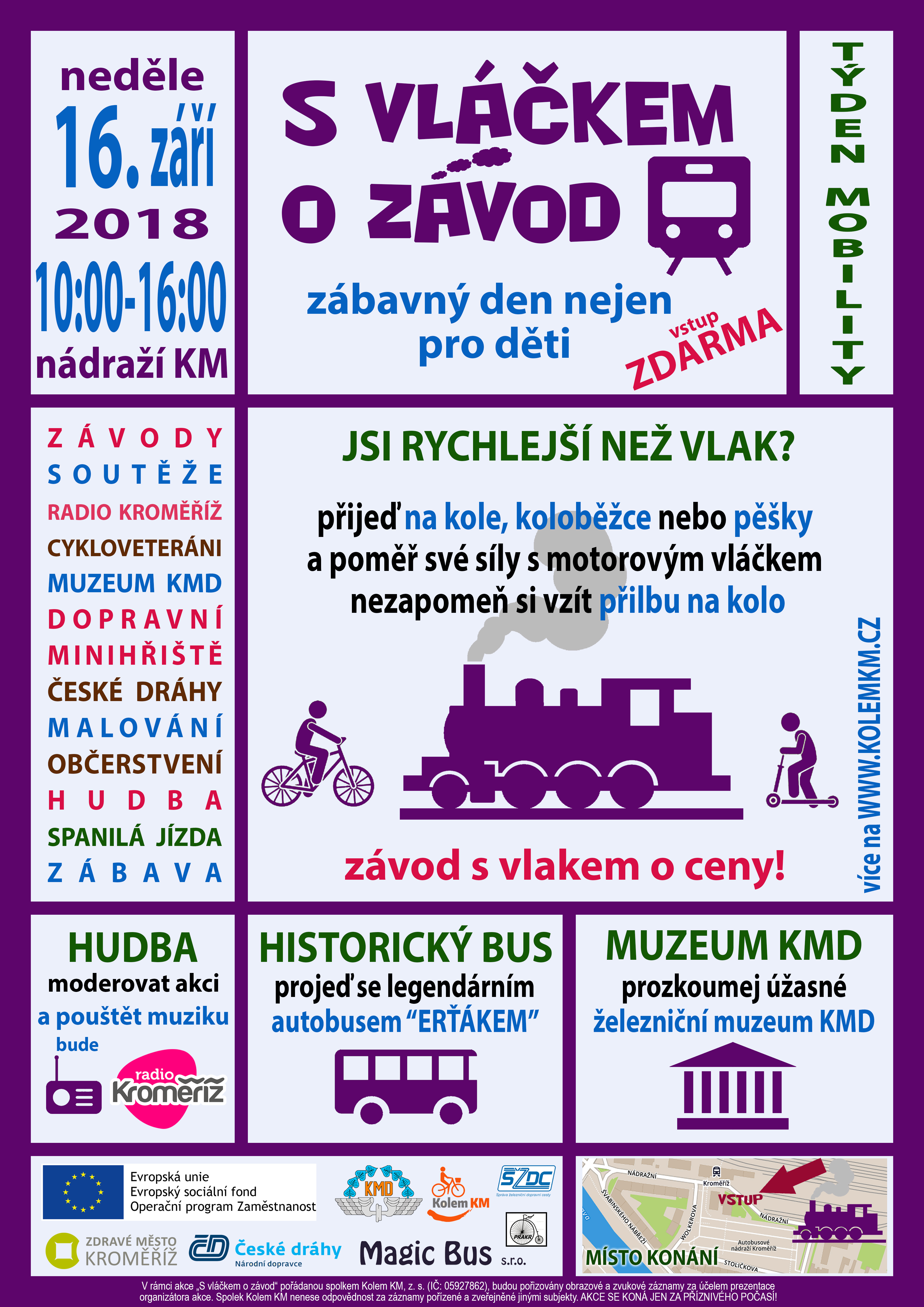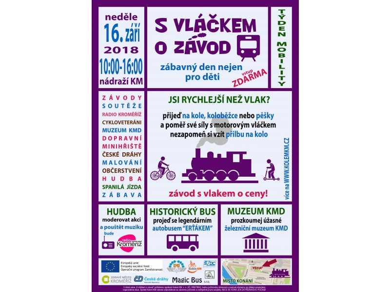 Přijďte na akci S vláčkem o závod, která bude určena jak pro malé, tak velké! Konat se bude v rámci Týdne mobility dne 16. září a bude při tom i Radio Kroměříž!