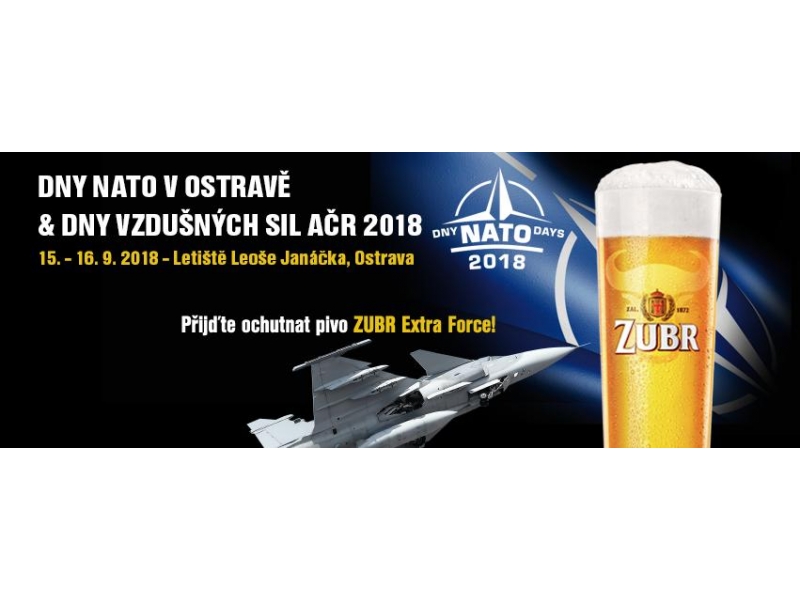 Návštěvníci letošní přehlídky Dny NATO v Ostravě & Dny Vzdušných sil Armády České republiky se tradičně mohou těšit na limitovaný speciál Zubr Extra Force, který pivovar Zubr speciálně pro tuto příležitost připravuje již řadu let. Nebudou chybět ani další druhy piva a nápoje z produkce pivovaru Zubr. Přehlídka se koná 15.-16. září na ostravském Letišti Leoše Janáčka.