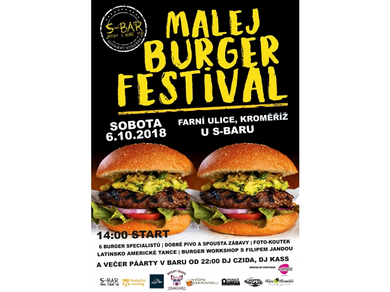 Dovolujeme si Vás pozvat na akci Malej Burger Festival, který se bude konat v sobotu 6. října ve Farní ulici, přilehlém parku a postranních uličkách. Pokud jste milovníci burgerů, tak byste si ji určitě neměli nechat ujít! V 6 stáncích se Vám představí burgeroví fajnšmekři z Kroměříže a okolí, kteří si zasoutěží o nejlepší burger festivalu. Mediálním partnerem této akce je Radio Kroměříž.