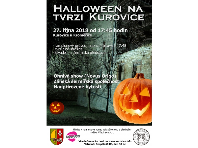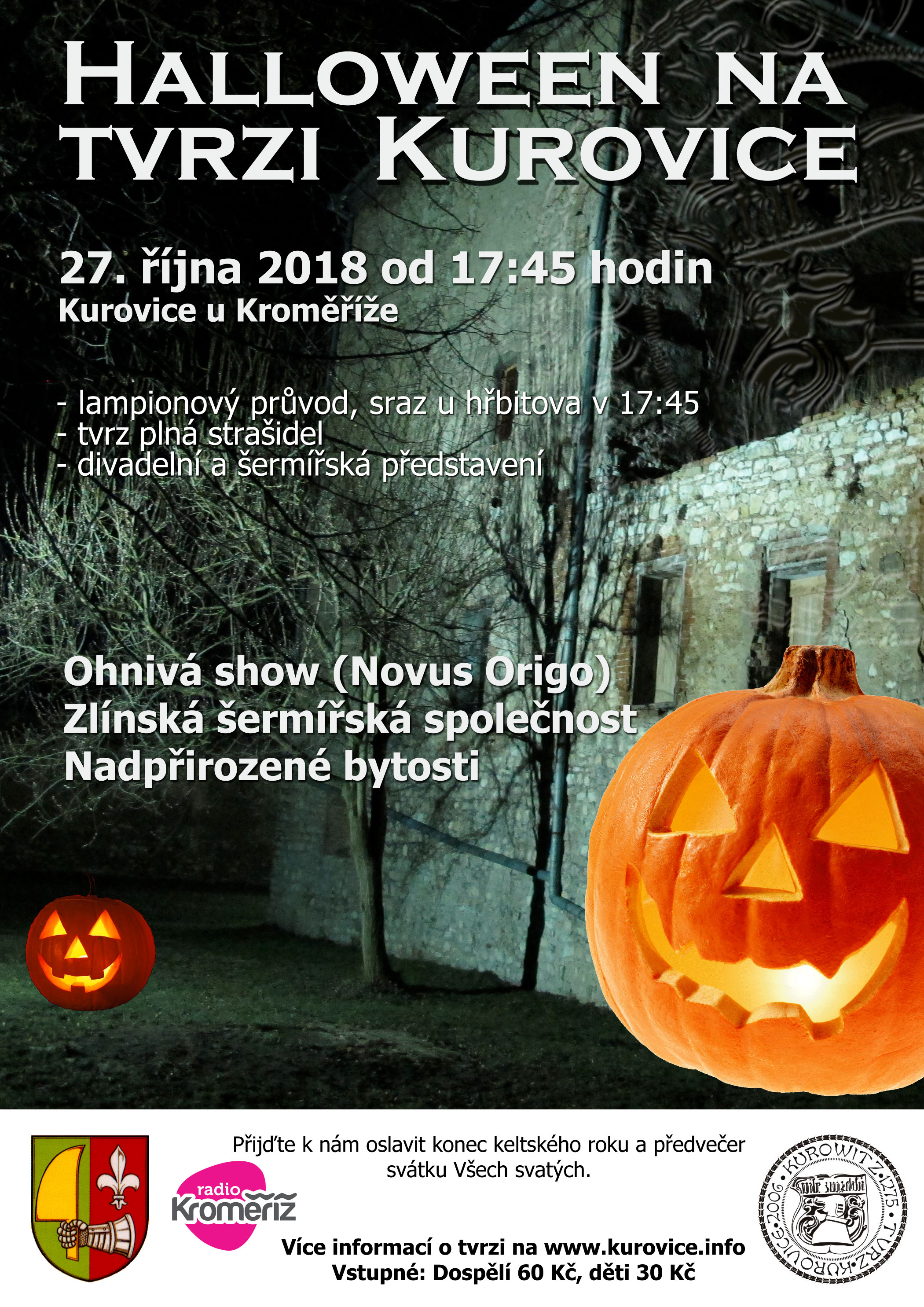 Radio Kroměříž Vas zve na Halloween na Tvrzi Kurovice! Vše vypukne v sobotu 27. října v 17:45, kdy je pro vás připraven lampionový průvod. Sraz je v Kurovicích u Hřbitova. Tvrz bude ten večer plná strašidel, čeká Vás ohnivá show, zlínská šermířská společnost, ale hlavně nadpřirozené bytosti.