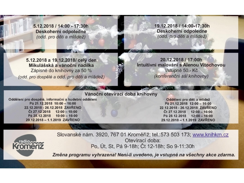 Toto ale není výčet všech akcí, které v prosinci můžete v Knihovně Kroměřížska navštívit! O zbylých se můžete dočíst níže.