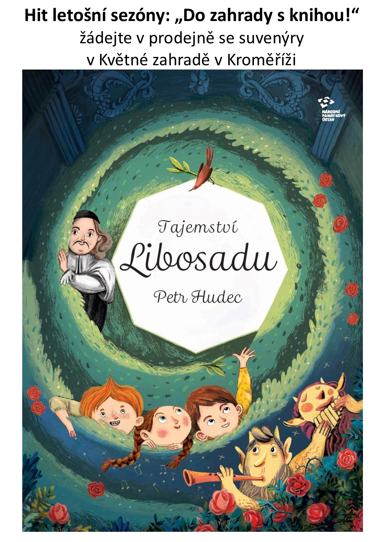 „Do zahrady s knihou!“ žádejte v obchodě se suvenýry na Arcibiskupském zámku a v obchodě se suvenýry v Květné zahradě v Kroměříži. Více informací a ukázku z knihy naleznete na webu: http://nczk.cz/novinka/vystava-ilustraci-z-detske-knizky-tajemstvi-libosadu