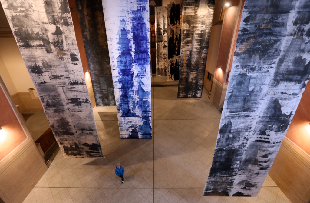 Patrik Hábl je známý také svými realizacemi v architektuře, které zasazuje do veřejného nebo do sakrálního prostoru. I pro zlínskou výstavu si připravil neobvyklou instalaci. Před vstupem do zámku upoutá pozornost návštěvníků 21metrové plátno napnuté na sloupořadí. Velkoformátová malba zpracovaná experimentálními technikami a postupy využívá jako podklad netradiční materiál, který se obvykle používá k tvorbě reklamních bannerů.