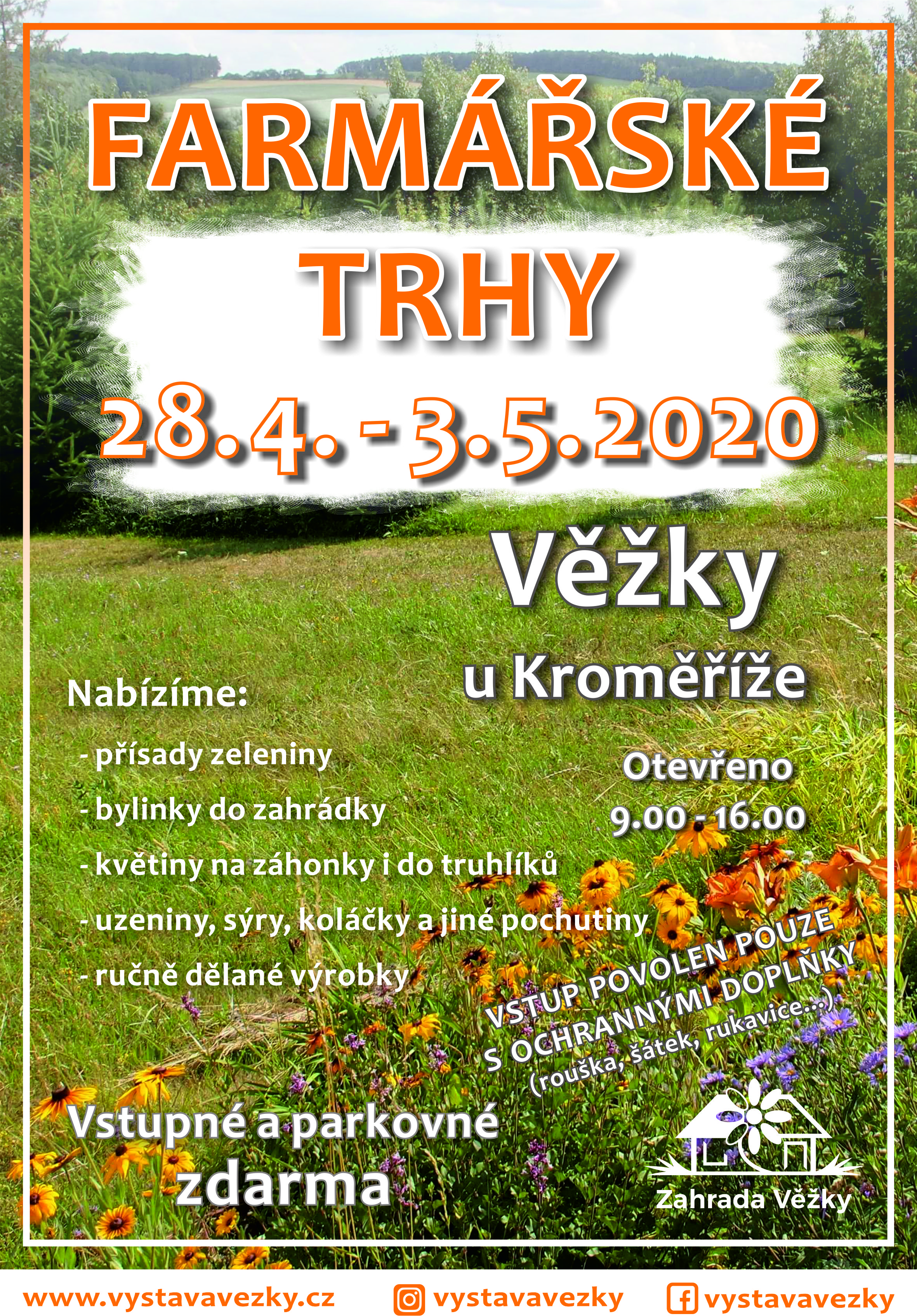 V rámci zpřísněných opatření v reakci na Koronavirus - COVID - 19 první jarní farmářské trhy - Jarmark v Zahradě - proběhnou za přísnějších hygienických opatření. Těšit se na Vás budeme v termínu 28. 4. - 3. 5. 2020 od 9 do 16 hodin. Budete si u nás moci nakoupit české výrobky a výpěstky přímo od výrobce. Každý si u nás najde to, co doma či na zahrádce postrádá.