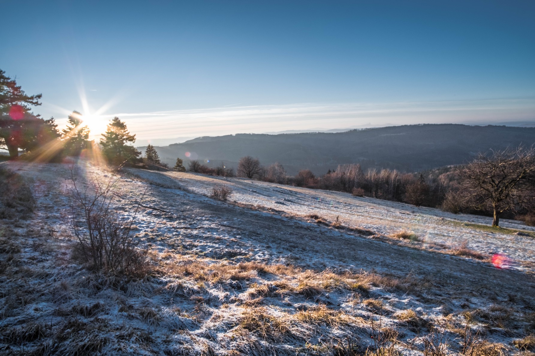 Za mrazivého zimního rána je to úžasná ranní vycházka, díky které budete mít energii na celý den. Teď v zimě je dobré, že nemusíte vstávat moc brzy, stačí tam být chvilku před sedmou hodinou. Začněte na Rusavě u autobusové zastávky Kino a běžte do kopců směr Čecher.
