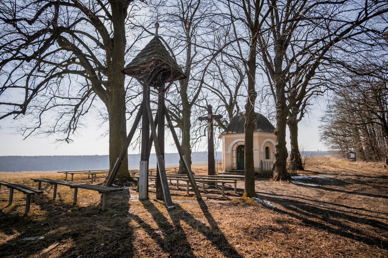 Lesem kousek vzhůru se vydejte i k poutnímu místu Na Jezírku. Nevadí, že tady žádné jezírko není. Široké rozhledy do krajiny jakoby ho připomínaly. Je tady dřevěná zvonička, lavičky a nad nimi baldachýn zelených korun stromů. Tady můžete být jak dlouho chcete. Uvidíte, že se vám ani nebude chtít zpět, tak je tady krásně.