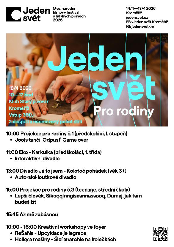 Do Kroměříže se opět vrací mezinárodní festival dokumentárních filmů Jeden svět, který každoročně otevírá témata lidských práv. Festival nabídne nejen filmové projekce a projekce pro školy, ale také debaty s hosty, hudební program nebo odpoledne určené rodinám s dětmi.