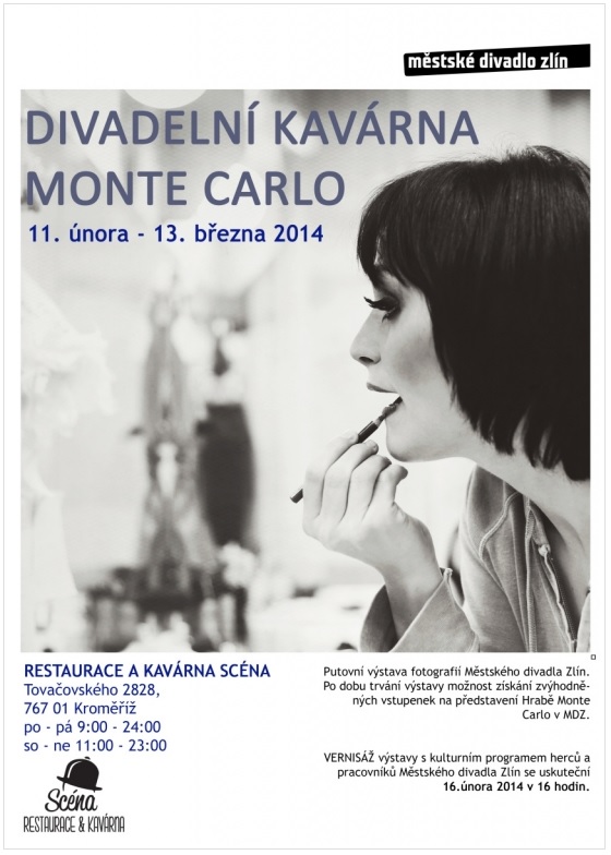V 16.00 se uskuteční vernisáž výstavy fotografií z inscenací, které jsou v Městském divadle Zlín právě na repertoáru včetně komedie Hrabě Monte Carlo, která se z velké části odehrává právě v kavárně. Obsluhovat budou zlínské herečky.