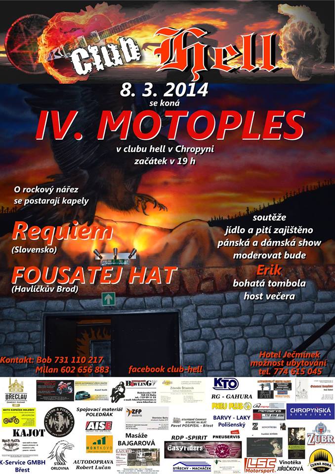 V sobotu 8. března se v Chropyňském Clubu Hell uskuteční již 4 ročník motoplesu. Začátek je naplánovaný na 19. hodinu, klub bude otevřený od 18 hodin.