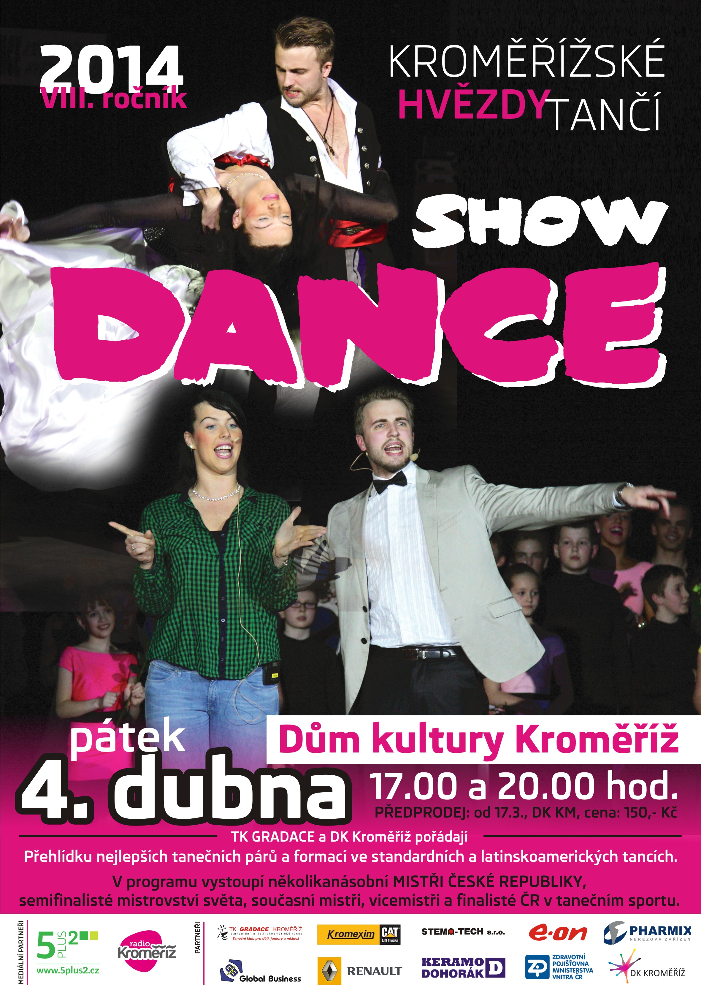 Taneční klub GRADACE Kroměříž a Dům kultury v Kroměříži pořádají v pátek 4. dubna 2014 od 17 a 20 hodin již poosmé ve společenském sále Domu kultury SHOWDANCE aneb Kroměřížské hvězdy tančí.