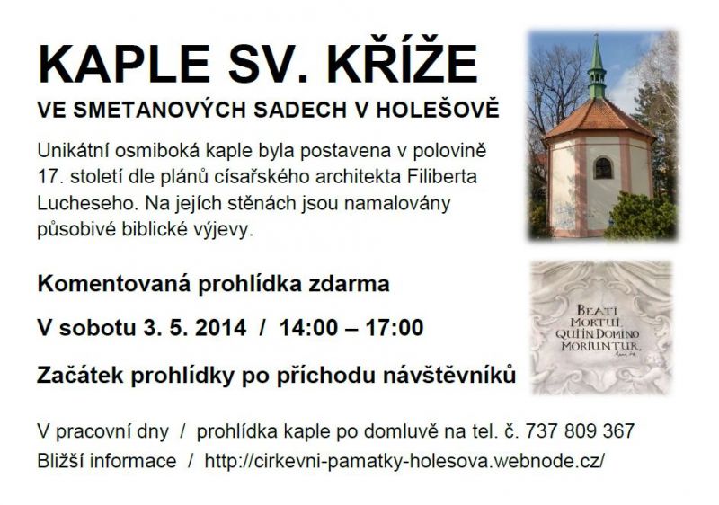 Využijte možnosti prohlédnout si interiér unikátní kaple sv. Kříže nacházející se uprostřed Smetanových sadů v Holešově.