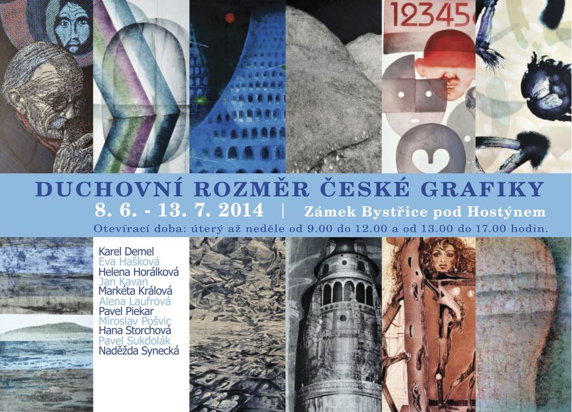 Výstava Duchovní rozměr české grafiky navazuje na prezentaci „Duchovní rozměr II”, která se konala v Galerii HOLLAR v Praze v roce 2011. Byla původně připravena pro Manhattan Graphics Center přímo v centru Manhattanu, kde ji slavnostně otevřeli v loňském roce, a končila letos v březnu. Do Bystřice pod Hostýnem tedy putuje ze Spojených států jako do prvního místa v České republice. Svá díla vytvořená v mnoha technikách (litografie, lept, akvatinta, linoryt a kombinovaná technika) zde budou prezentovat Karel Demel, Eva Hašková, Helena Horálková, Jan Kavan, Markéta Králová, Alena Laufrová, Pavel Piekar, Miroslav Pošvic, Hana Storchová, Pavel Sukdolák a Naděžda Synecká. Kurátorsky výstavu připravila jedna z autorů, grafička Alena Laufrová.