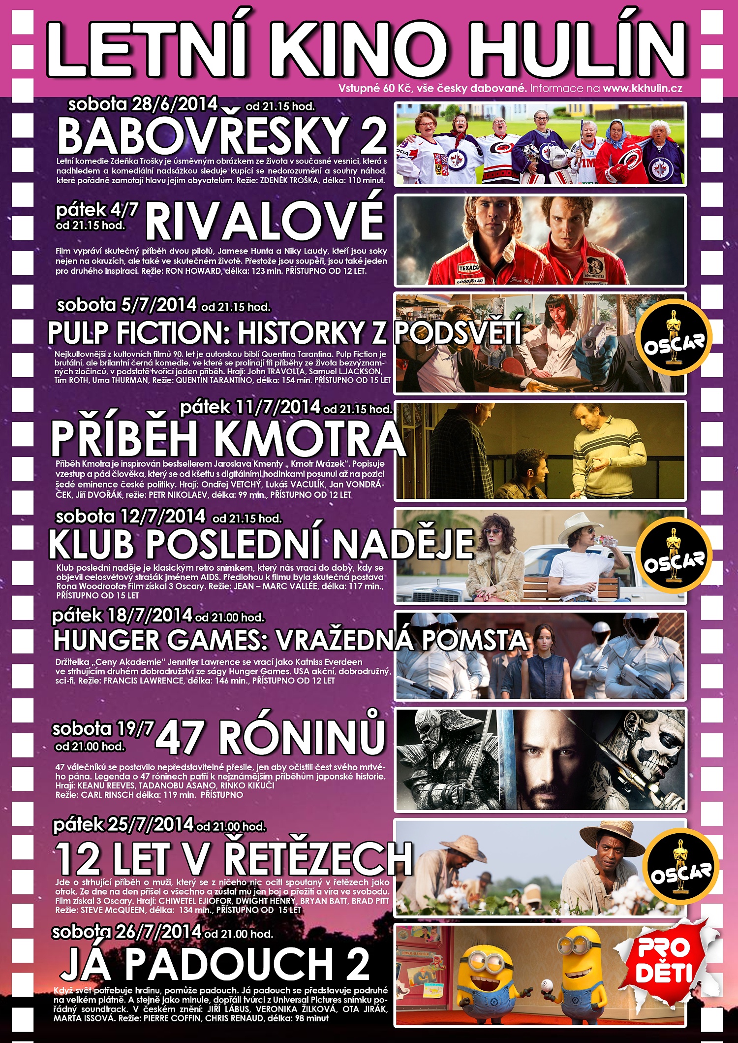 Program letního kina v Hulíně naleznete