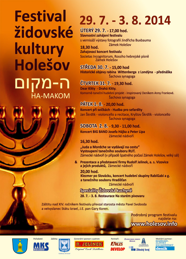 Speciality ŽIDOVSKÉ KUCHYNÉ, které uspokojí i náročného gurmána… ochutnávka židovských specialit, židovského pečiva a košer vín ve spolupráci s restaurací Na starém pivovaru Holešov (21. – 27. 7. 2014)