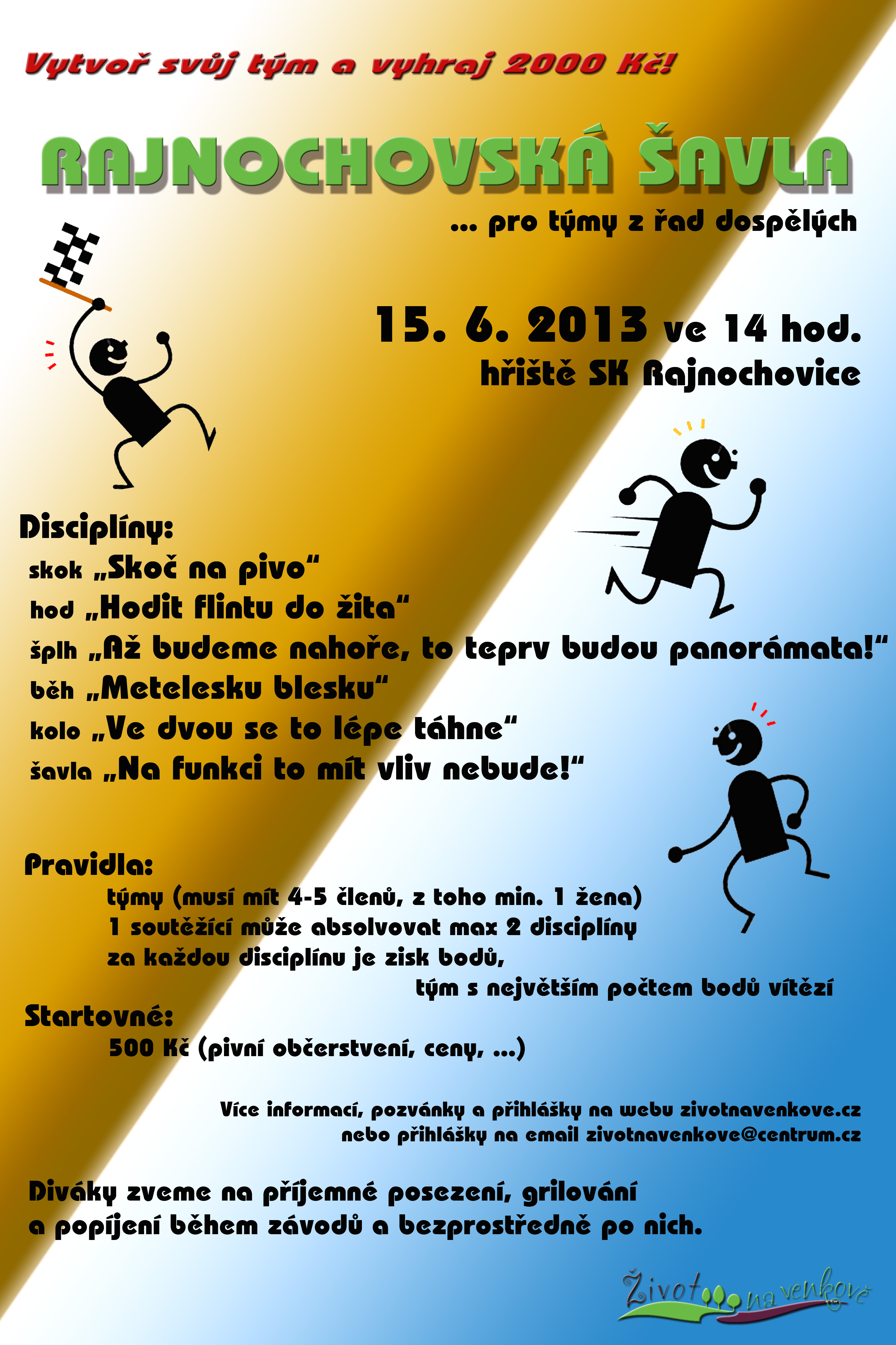 Sestavte tým a přijďte si zpříjemnit sobotu do Rajnochovic. Zváni jsou i diváci, které bude čekat bohaté občerstvení a nevídané zážitky.