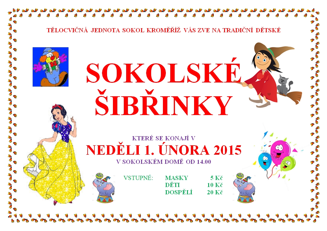 Tradiční a jako vždy veselé šibřinky chystají Sokolové v Kroměříži na neděli 1. února do Sokolského domu na ulici 1. Máje. Začátek ve 14 hodin.