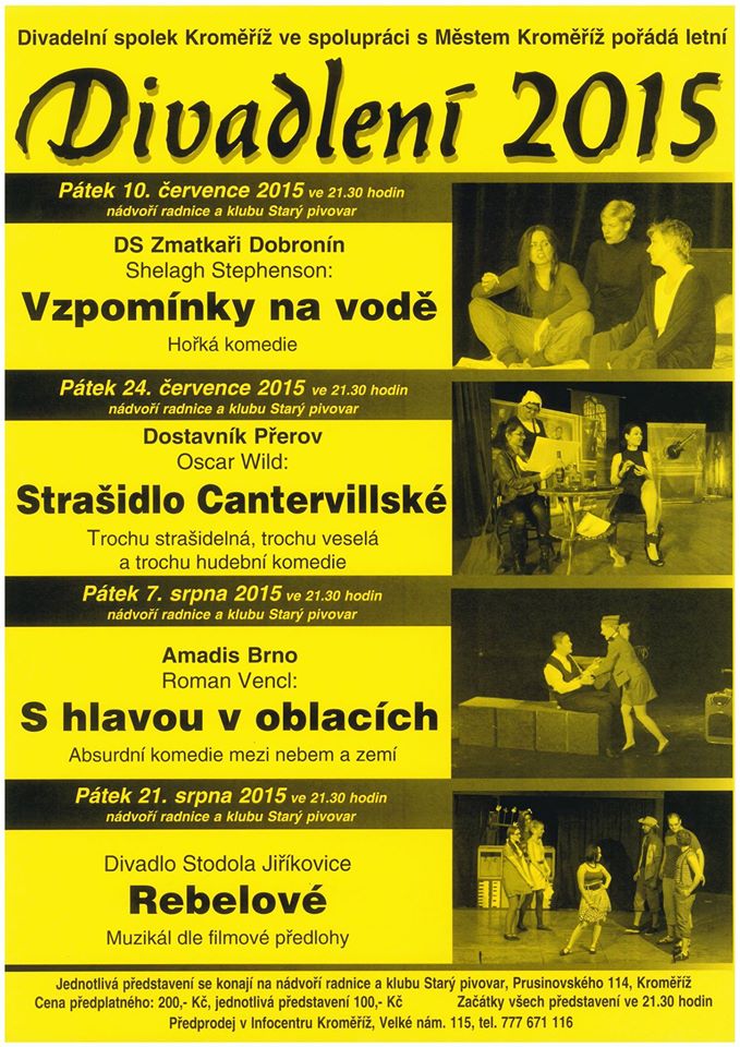 Divadelní spolek Kroměříž ve spolupráci s městem Kroměříží pořádá letní Divadlení 2015 na nádvoří radnice a Klubu Starý pivovar.